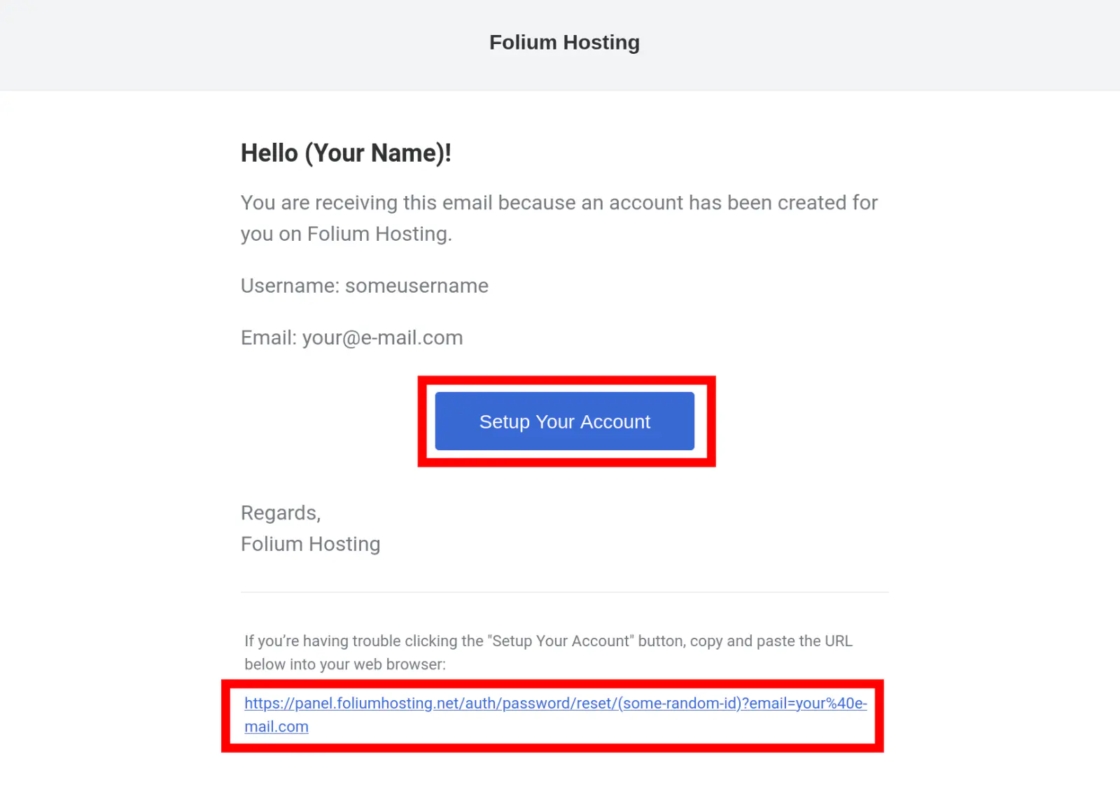 Check your inbox and spam for an email from foliumhosting.net and set up your password.
