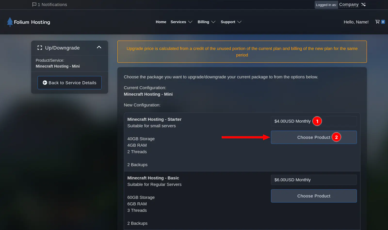 Select the preferred package you’d like to upgrade to. (1) Select Billing Cycle Length (2) Go to upgrade overview
