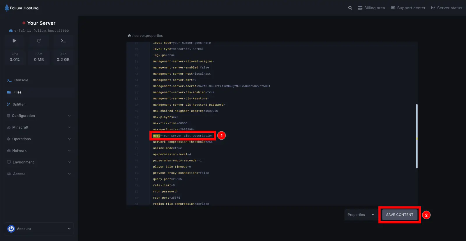 Open the server.properties file