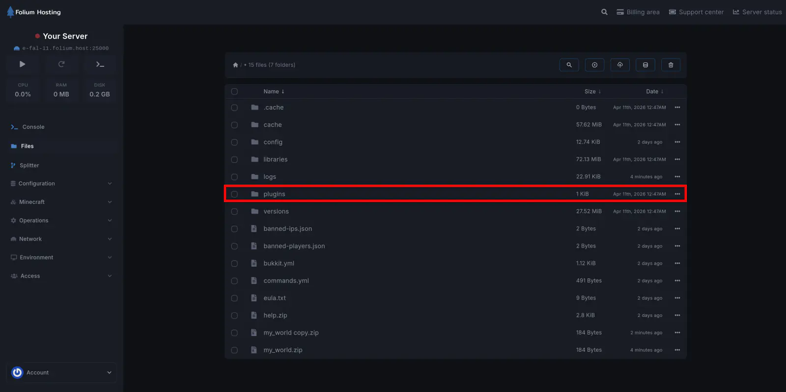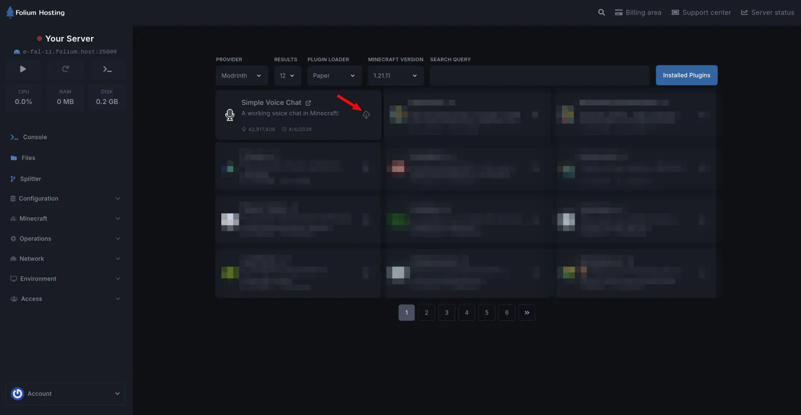 Under the Minecraft section, go to the Plugin tab and search for the plugin you want to install.