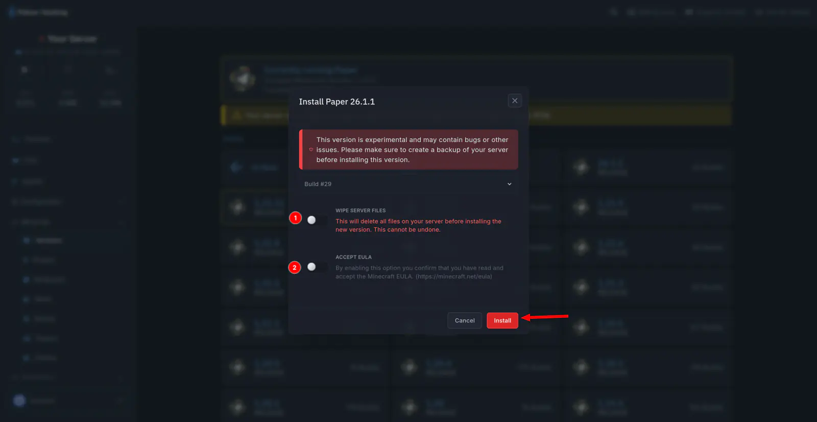 If you wish to simply upgrade your server, do not select the “wipe server files” option.