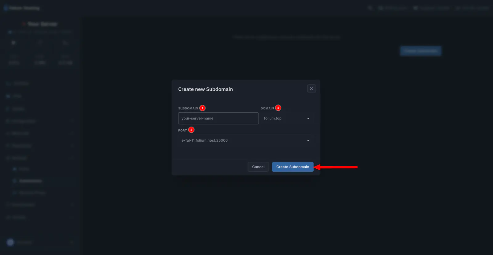 | _minecraft._tcp.play | _minecraft | TCP | Auto | 0 | 0 | The server port (example: 25580) | the server hostname without port (example: e-fal-0.folium.host ) |