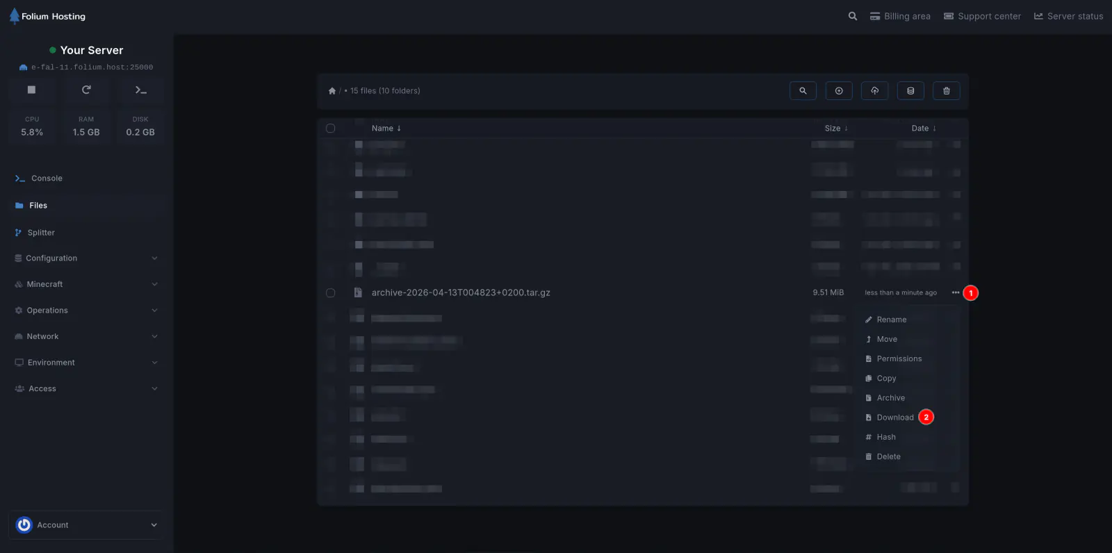A new archive will be made. Click on the Three Dots on the extreme right of the archive and click Download