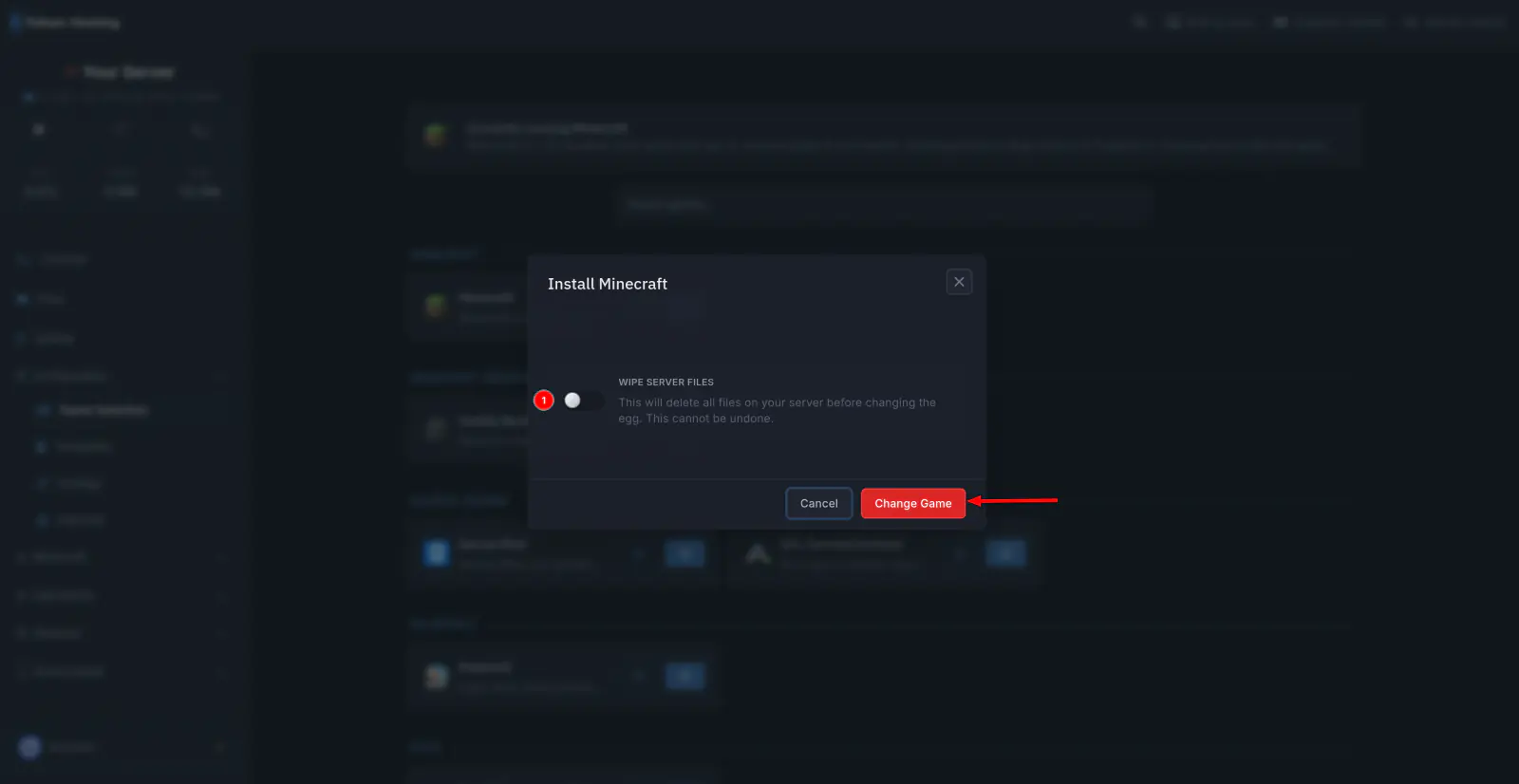 After selecting a game, confirm the change. The server will reinstall with the selected game’s configuration.